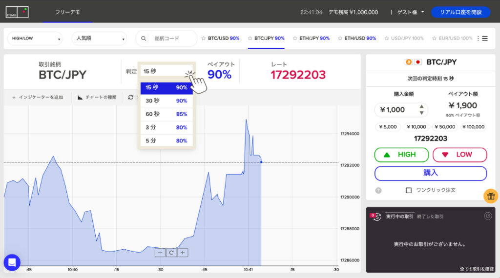 ザオプションのデモ取引では、登録不要で実際の取引と同じ環境、同じ機能を使用できます。