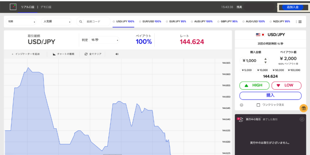 パソコンの場合は右上の「追加入金」、スマホの場合は右上の「三」ボタンから「追加入金」を選択します。