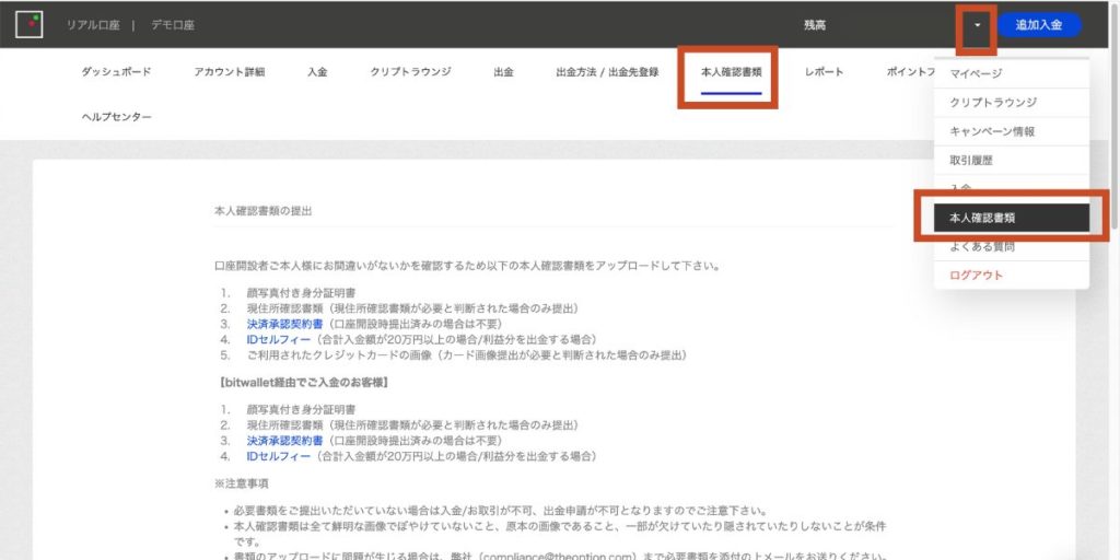 ザオプションのIDセルフィーの提出方法